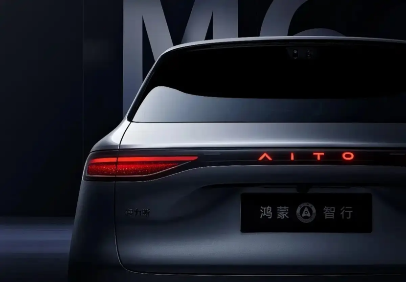 车辆配备双五辐亮黑色轮圈和红色刹车卡钳,并采用半隐藏式车门把手。尾部为贯穿式尾灯,中间的问界Logo可发光。