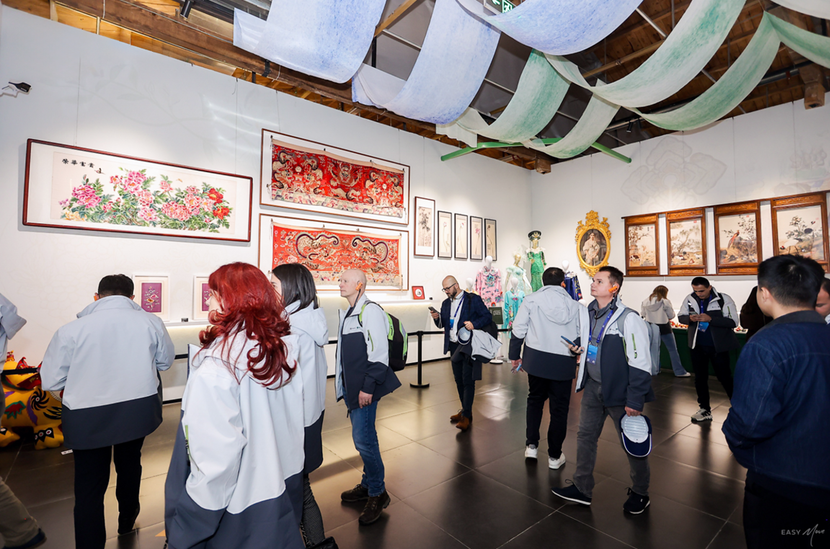 本次旅程,嘉宾们还深入体验了潍坊当地文化。这座1.5万平方米的文化新地标,以其丰富的馆藏和活态展示,让嘉宾们领略到潍坊作为"世界手工艺与民间艺术之都"的独特魅力。展馆以“百工巧艺、音韵绵长、四时风物、美美与共”四大篇章为脉络,系统呈现潍坊非遗的深厚历史与活态传承。