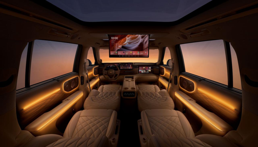 驾驶眼点高度1.6米,前向视野开阔。全系集成520线激光雷达与英伟达Thor芯片,提供L3级感知能力赋能L2辅助驾驶,搭配Momenta大模型优化体验。智慧探射灯、雨夜模式2.0及AI越野补盲消除视野盲区。座舱首搭B&O音响、4D机械按摩座椅(强度为气动7倍)及瞬净新风系统(每小时换气100次)。野奢户外套装支持24小时热水,三零重力座椅、21.5英寸4K后排屏与12.3L冰箱提升豪华体验。四、市场定位与预订