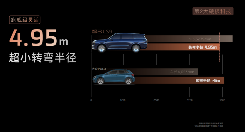 针对传统大六座SUV“笨重、侧倾”痛点,智己LS9搭载灵蜥数字底盘3.0,配备双向24°智慧四轮转向系统,近5.3米车长实现4.95米转弯半径,灵活性媲美小型车;150mm行程双腔空气悬架配合智能阻尼调节,兼顾操控稳定性与路面滤震效果。同时,全系标配矢量四驱系统、爆胎稳定控制及主动防侧翻3.0系统,提升复杂路况通过性与安全性。