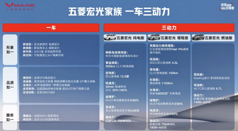 动力系统方面,此次五菱宏光家族提供燃油、纯电、增程式电动三种动力形式,其中燃油版采用1.5L发动机搭配6速手动变速箱,发动机最大功率81kW,峰值扭矩145N·m,WLTC工况下油耗仅6.7L/100km。