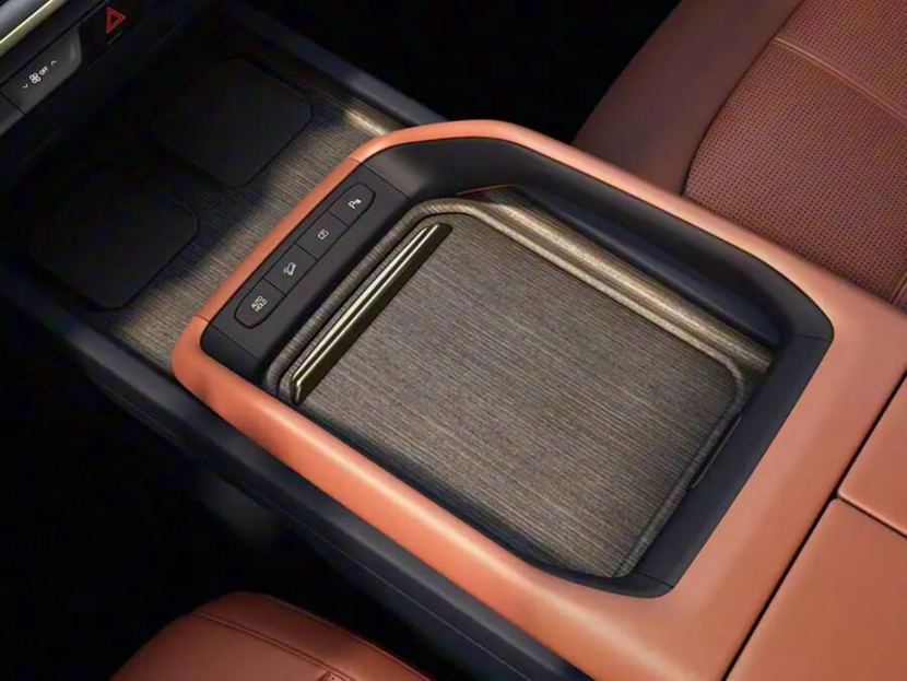 新车内饰采用环抱式座舱设计,前排配备双联屏以及三辐式多功能方向盘,并且在中控台处也保留了大量实体按键方便操作。中央岛台区域配备手机无线充电以及扶手,中央储物格提供灵活布局方便不同消费者的用车习惯。车内采用2+2+3布局,前排座椅支持加热、通风等功能,二排座椅则会提供电动调节以及小桌板等。