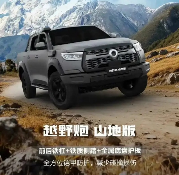 动力方面,商用炮山地版搭载2.0T及2.4T柴油发动机,传动匹配6MT、8AT及9AT变速箱;越野炮山地版搭载2.0T汽油高功率及2.4T柴油发动机,传动匹配8AT及9AT变速箱。新车还搭载博格华纳4A+MLOCK超级四驱系统。